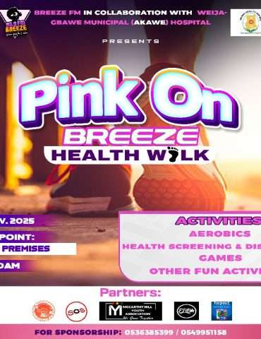 In the spirit of health, wellness, and community, Breeze FM in collaboration with the Weija-Gbawe Municipal (Akawe) Hospital is set to host the much-anticipated Pink On Breeze Health Walk on Saturday, 1st November 2025.
